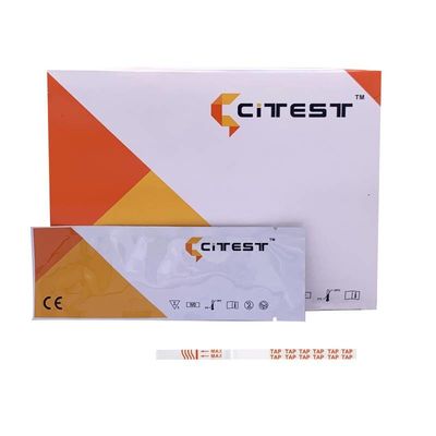 Il Dipstick TAP Rapid Test (Urin) è un immunoassay cromatografico rapido basato sul principio del legame competitivo.I farmaci che possono essere presenti nel campione di urina competono con il coniugato del farmaco per i siti di legame sull'anticorpo. Durante il test, un campione di urina migra verso l'alto per azione capillare.non saturerà i siti di legame delle particelle rivestite di anticorpi nella provaLe particelle rivestite da anticorpi saranno quindi catturate dal coniugato di tapentadol immobilizzato e apparirà una linea colorata visibile nella regione della linea di prova.La linea colorata non si formerà nella regione della linea di prova se il livello di tapentadol supera 1000 ng/ml perché satura tutti i siti di legame degli anticorpi anti-tapentadol.Un campione di urina positivo al farmaco non genererà una linea colorata nella regione della linea di prova,mentre un campione di urina negativo per il farmaco o un campione contenente una concentrazione di farmaco inferiore al limite genererà una linea nella regione della linea di provaPer servire come controllo procedurale, una linea colorata apparirà sempre nella regione della linea di controllo, indicando che è stato aggiunto un volume adeguato di campione e che si è verificato il raggruppamento della membrana.