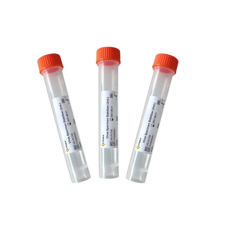 Questo prodotto è applicabile alla raccolta di esemplare dall'esemplare rinofaringeo umano del tampone ed alla conservazione di acido nucleico virale. Lo stabilizzatore del campione contiene l'isotiocianato della guanidina ed altri reagenti di denaturazione della proteina che possono rapidamente fare l'elettrolisi le cellule e denaturare le proteine virali per ottenere il virus inattivato e per rilasciare gli acidi nucleici del virus. L'alta concentrazione di sale della guanidina in una soluzione tampone adatta può inibire l'attività della nucleasi e efficacemente proteggere l'integrità degli acidi nucleici. Il tubo senza nucleasi è trattato con l'eliminatore della nucleasi più ulteriormente che assicura l'integrità di acido nucleico.